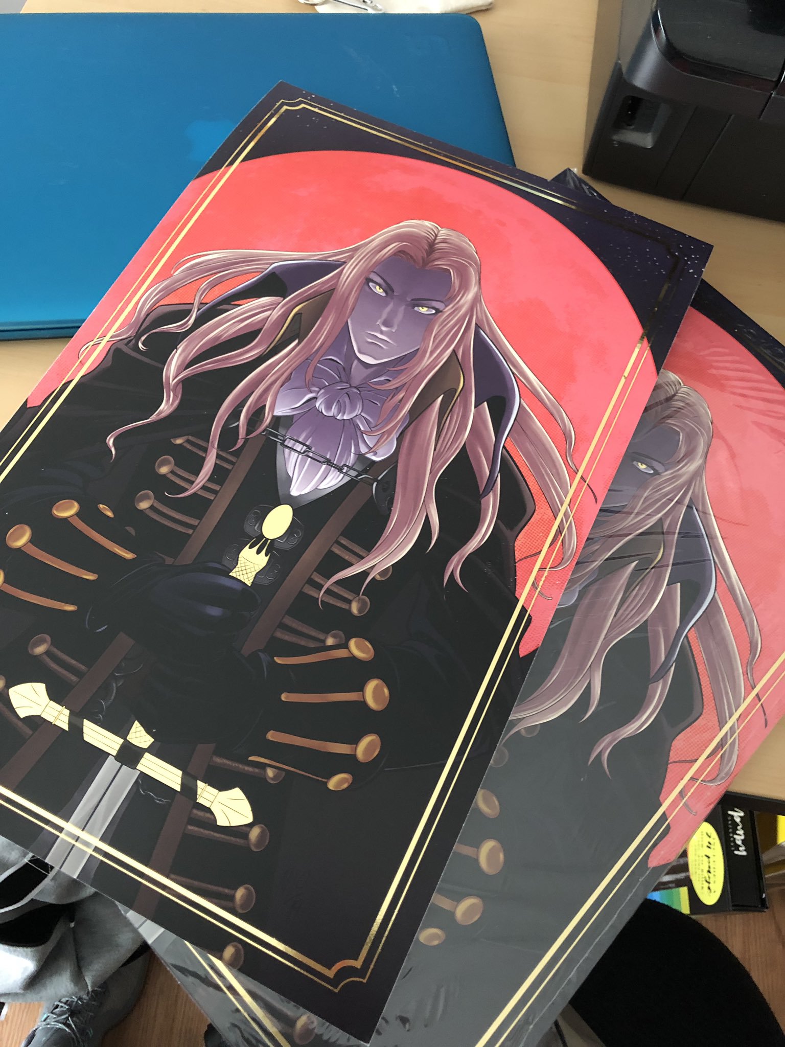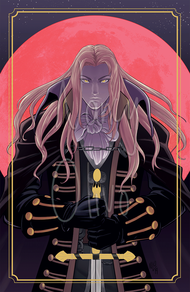 This heavy-weighted print has the eyes, sword, and frame decorated with gold foil, making this a solid fit for vampire fans!
